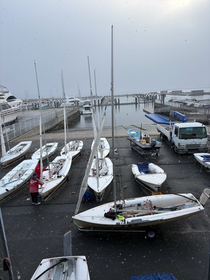 午前中は動作練習を中心に、マークランを行いました。今年のスナイプクルーは人数が多く全員が午前中に乗艇できないため、私はしぶきで他の同期の動作を見学し、イメージトレーニングに努めました。セールトリム、ヒールトリムについては、スキッパーから繰り返し指導を受けており、常に意識して乗艇しています。