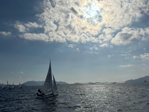 午前中は0.5~6.5ノットの風が吹きました。微風のコンディションの中、マークランやスタート練習を通して動作の確認が行えたので、新人クルーの私たちにとってすごく有意義なものになったと感じます。