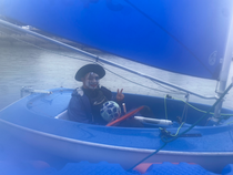その後ハンザに乗り海に出たのですが全てを1人でしなければならないので腕がもう2本欲しいくらいの忙しさでした。今回のしぶき杯は1年生の人数が多いためスナイプフリートと470フリートに分かれて行われました。自分は470フリートでその中での順位は10艇中10-7-1-10-6と基本的に後ろの方を走ることになってしまいました。しかし1度だけ1位を取りトップホーンを鳴らすことができたのでとても気持ちよかったです。また船の角度とメインセールを自分でトリムする初めての機会で勉強になることもとても多かったです。レグやルールの面でも分かっていたつもりでもいざ海で即座に判断しないといけない場面があり詳しい知識と経験を積むことが大切だと感じました。明日は今日の成績を基にゴールドフリートとシルバーフリートに分かれてレースを行い、自分はシルバーフリートのためその中で一位を目指して頑張ります。